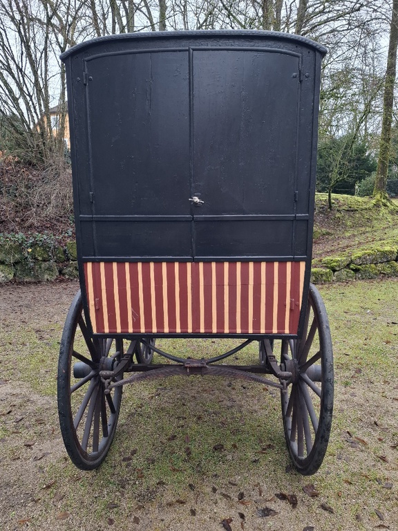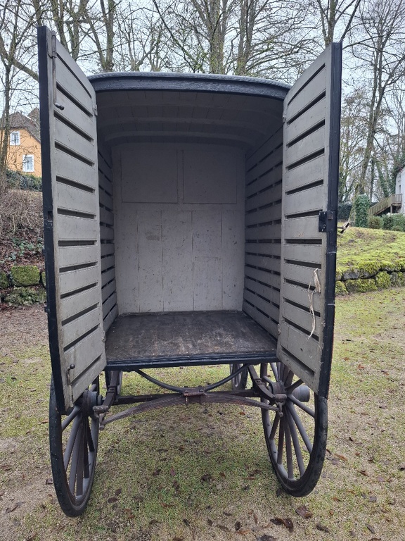 Ehemaliger Schusterwagen, komplett fahrbereit für Ein-oder Zweispänner, hinten Flügeltür zu einladen. Sehr vielseitig einzusetzen ist dieser historischer Fourgon, die Werbung ist entfernt!