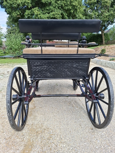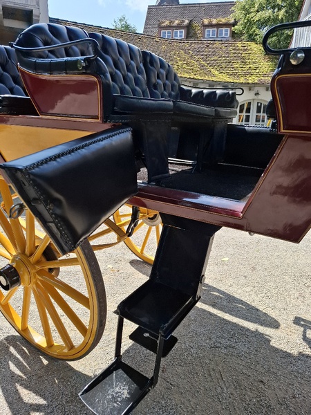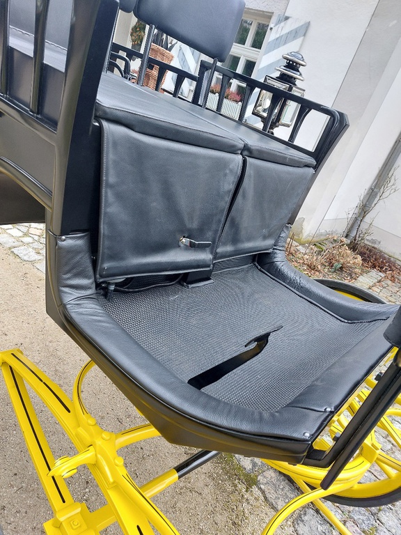 Sehr sportlicher Klapp-Phaeton, ob Ein-oder Zweispännig zu fahren und auch als Tandem möglich. Das Lederdach ist mit ein paar Handgriffen abzunehmen. Lederbockdecke für den Fahrer-und Beifahrer(in) , hinten Notsitz oder als Stauraum zu nutzen. Eleganter Traditionswagen!