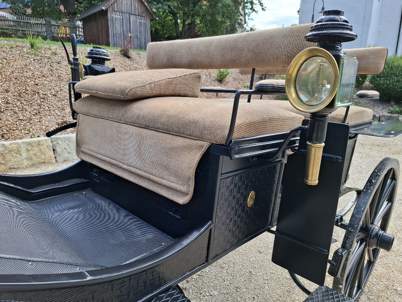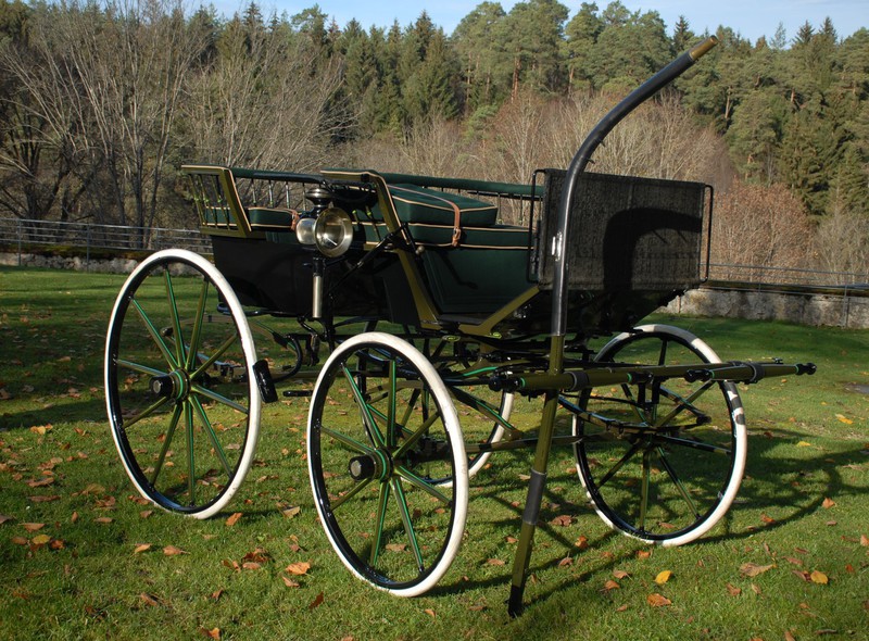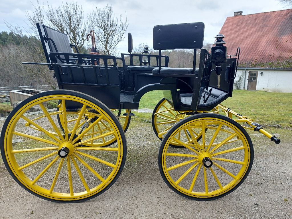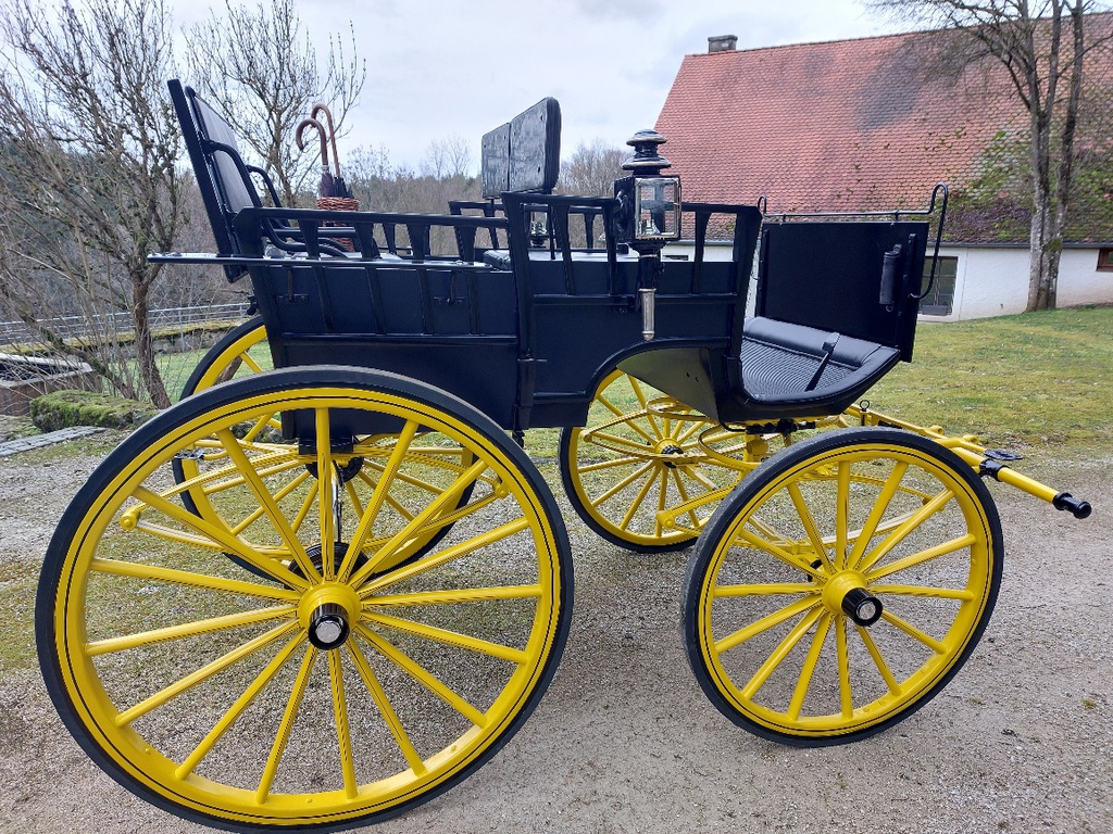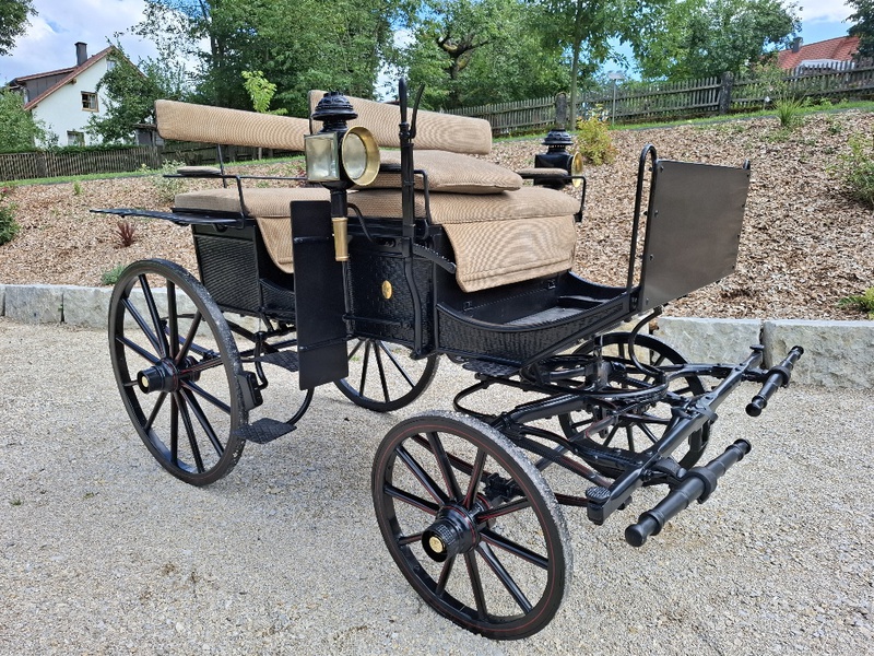 Schicker, leichter, sportlicher Demi-Phaeton aus Frankreich mit originalen Lampen. Idealer Damenwagen für das Traditionsfahren, der sehr leicht läuft und zudem eine angenehme Laufruhe zeigt. Hochwertig neu aufgebaut!