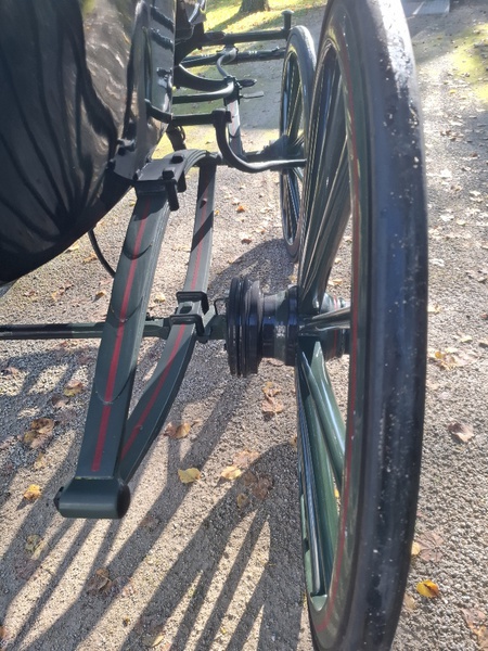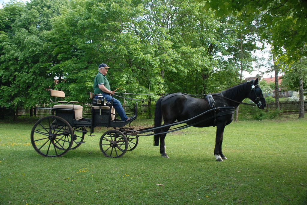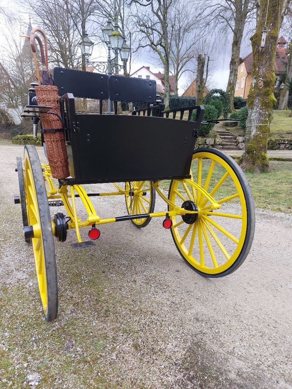 Super zu fahrendes Cabriolet, ob Einspänner oder als Tandem. Ideal für Pferdegröße ab 168 cm. Beide Räder wurden erneuert, Trommelbremse zum sicheren Fahren.