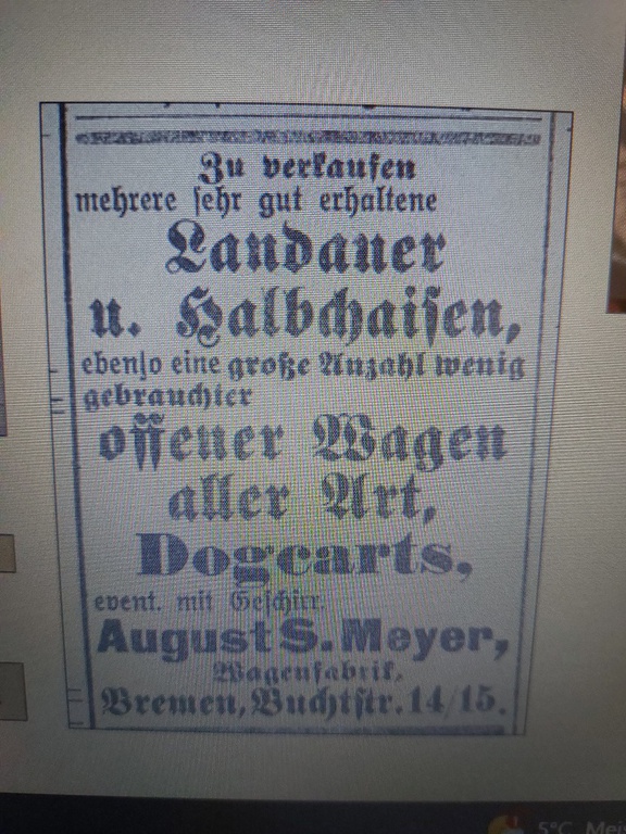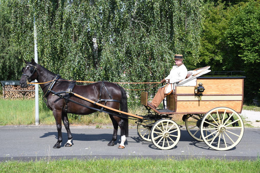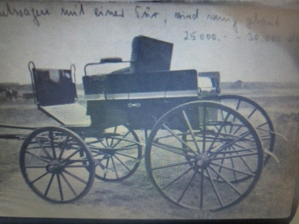 Ein-und Zweispänner Gewerbewagen aus dem Besitz von Otto Wiegnad in Zwickau. Wir haben diesen besonderen Wagen aus einem Kutschenmuseum erworben und in 2019 augwendig neu aufgebaut. Hier die Maße: L 230 cm, B 155cm, Räder vorn 72 cm hinten 102,5 cm, Spurbereite vorn 127 cm hinten 130 cm, Sitzhöhe 145 cm ohne Keilkissen. Das Leinendach ist auch komplett abzunehmen.