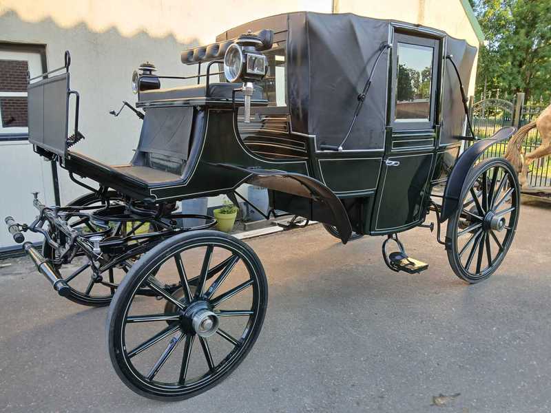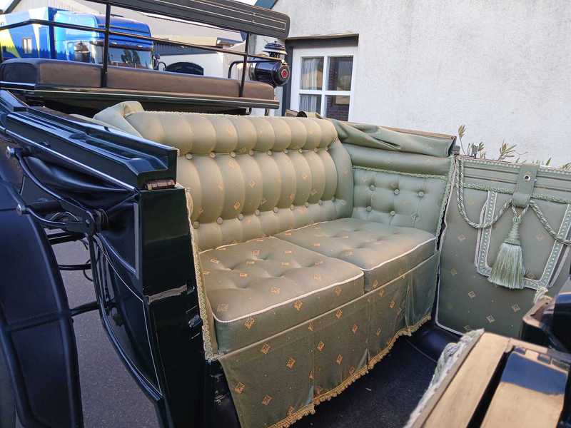 Zwei-oder Vierspännig zu fahren ist dieser sehr gepflegte Landauer aus Holland. Hochwertige historische Polsterung, 4 x Schiebenbremse, Kurbelbremse, Lederkotflügel, Rundgummi auf den Rädern. Neuwertiger Zustand!