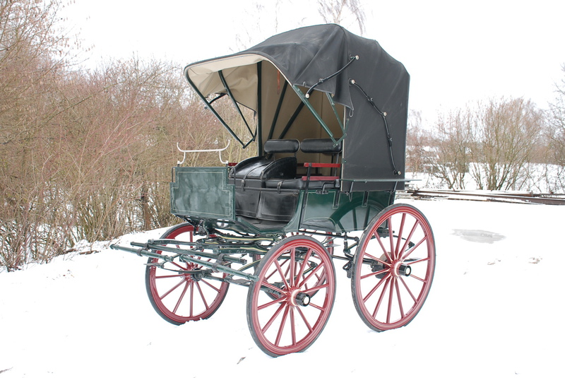 Vielseitiger Ein-und Zweispännerwagen, Beifahrersitz hochklappbar, aus Phaeton oder auch als Dos a Dos zu fahren, das Dach ist leicht abzunehmen, nagelneue Radgummi, Radbremse und überholte Scheibenbremsanlage.