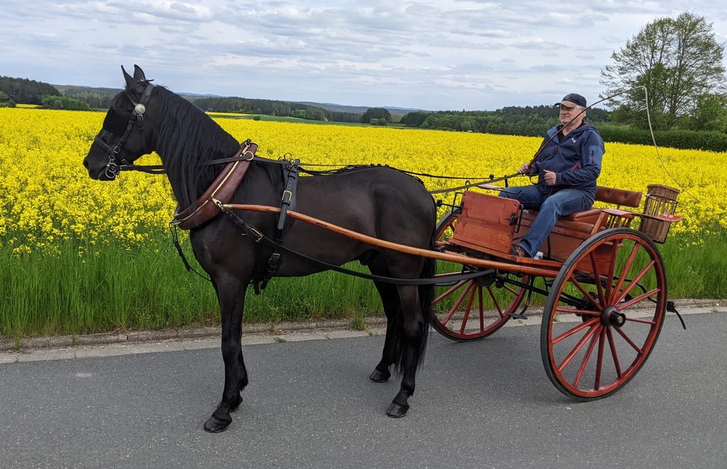Toller, leichter Buggy mit Trommelbremse und Stecksitz hinten. Wir haben diesen Wagen zum EINFAHREN unterschiedlicher Pferderassen, von Pony bis schweres Warmblut genutzt. Da die Einspannerschere viele Varianten in Länge und Breite erfüllt, passt jedes Pferdchen vor diesen Wagen, das Gewicht liegt bei 120-140 kg. Der Buggy hatte ab Werk Metallräder, die wir bei der kompletten Restauration gegen 4 neue Lufträder ausgetauscht haben.